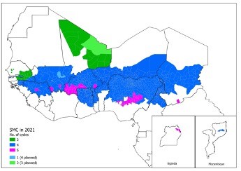 Areas across Africa where seasonal malaria chemoprevention (SMC) is implemented (OPT-SMC initiative).