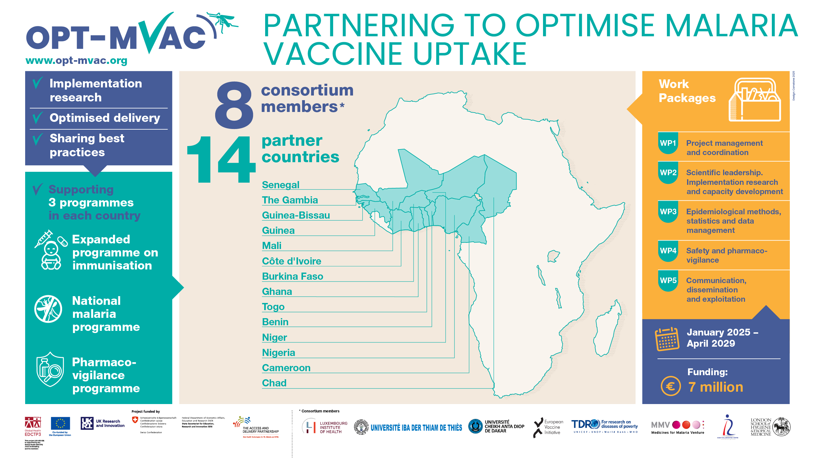 OPT-MVAC is funded by the Global Health European and Developing Countries Clinical Trials Partnership 3 (Global Health EDCTP3) Joint Undertaking, the European Union, the Swiss State Secretariat for Education, Research and Innovation (SERI), UK Research and Innovation (UKRI) and the Access and Delivery Partnership (ADP).