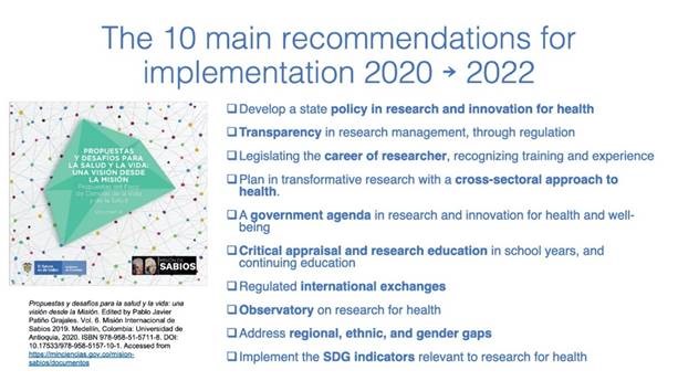 A high-level vice-presidential commission in Colombia launched the report by the Life and Health Sciences sub-commission that included 10 recommendations to be implemented by the Colombian Government by 2022. The report was presented to the Minister of Science and Technology and to Colombia’s Vice-President on 20 October 2020 and is available in Spanish on the webpage of the Ministry of Science and Technology – Misión de Sabios and in the library of the Universidad de Antioquia, a TDR partner on implementation research capacity building.