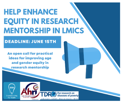 Social Entrepreneurship to Spur Health and the TDR Global node at the Armauer Hansen Research Institute (AHRI) have launched an open call for practical ideas to improve equity and inclusivity in research mentorship. The purpose of this open call is to identify innovative strategies to enhance equity in research mentorship programmes, with a focus on age and gender-related dimensions.