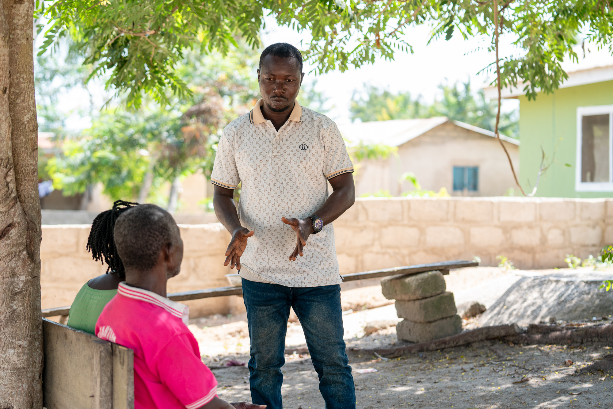 Assemblyman and community health committee member George Frimpong Sem takes part in a community engagement session to raise awareness of the importance of public participation in river blindness control activities. Credit: UNDP/Adenike Ademuyiwa.
