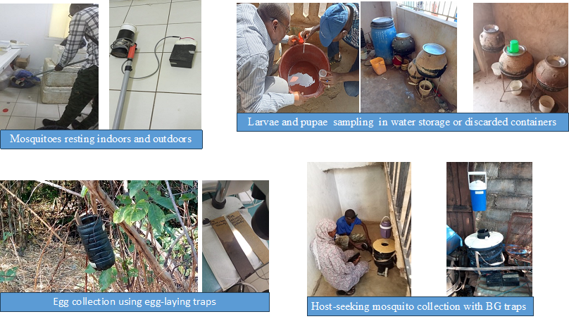 Since September 2023, vector sampling has been taking place in both Senegal and Nigeria. Adult mosquitoes resting indoors and outdoors have been collected using a Prokopack Aspirator, while host-seeking mosquitoes were collected using BG-Sentinel traps inside and outside of houses.