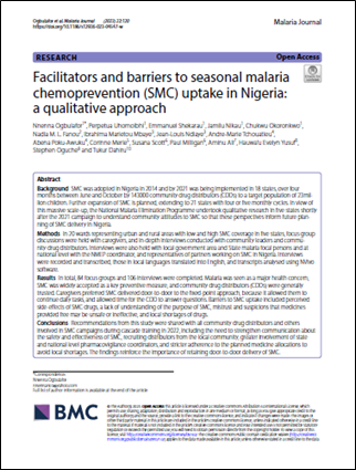 A new publication discusses facilitators and barriers to uptake of seasonal malaria chemoprevention (SMC) in Nigeria. This is related to the OPT-SMC project on optimizing SMC implementation in 13 sub-Saharan African countries.